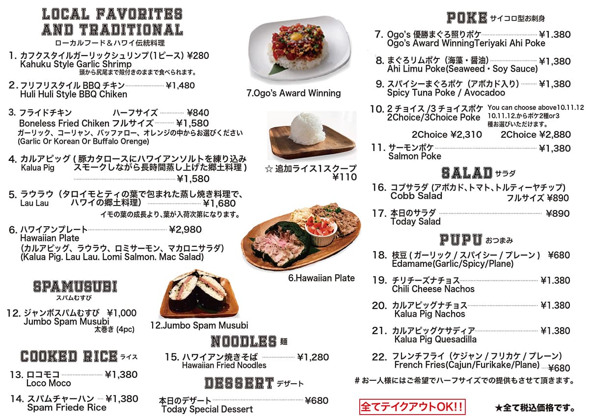 Delivery Menu デリバリー・メニュー